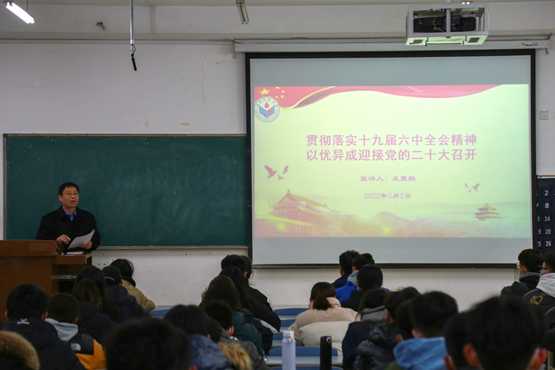 王寰鹏书记从深刻认识党的百年奋斗历史经验,深刻认识党的百年奋斗的初心使命,深刻认识中国特色社会主义新时代的历史成就和历史性变革,深刻认识党的百年奋斗的历史意义和历史经验,深刻认识以史为鉴、开创未来的重要要求,从党的百年奋斗历程中汲取智慧和力量,担当作为、以优异成绩迎接党的二十大召开等七个方面进行讲述,系统全面、深入浅出地给同学们讲解了党的十九届六中全会的重要内容和精神。