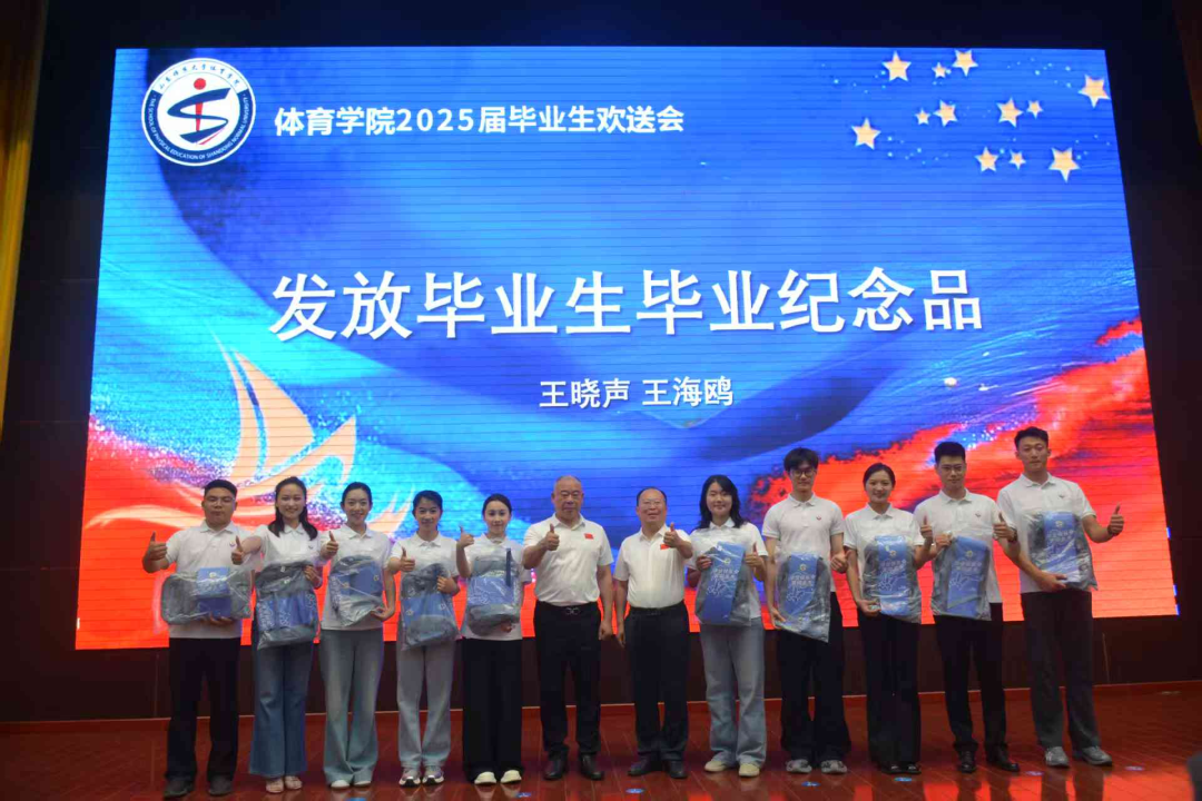 活动最后,王晓声、王海鸥为毕业生代表发放学院精心设计的毕业纪念品。纪念品承载着学院对学子的深情厚谊,寓意“无论走多远,山师体院永远是温暖的家”。