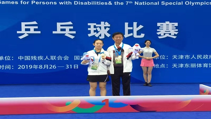 8月26日至31日,全国第十届残疾人运动会暨第七届特殊奥林匹克运动会乒乓球比赛项目在天津举行。我校2019级高水平专业本科生王哲夺得TT13级女子单打冠军、混双冠军、团体冠军、女双亚军。2019届高水平专业本科毕业生王聪夺得TT13级男子单打冠军、混双冠军、团体冠军、双打第五名。