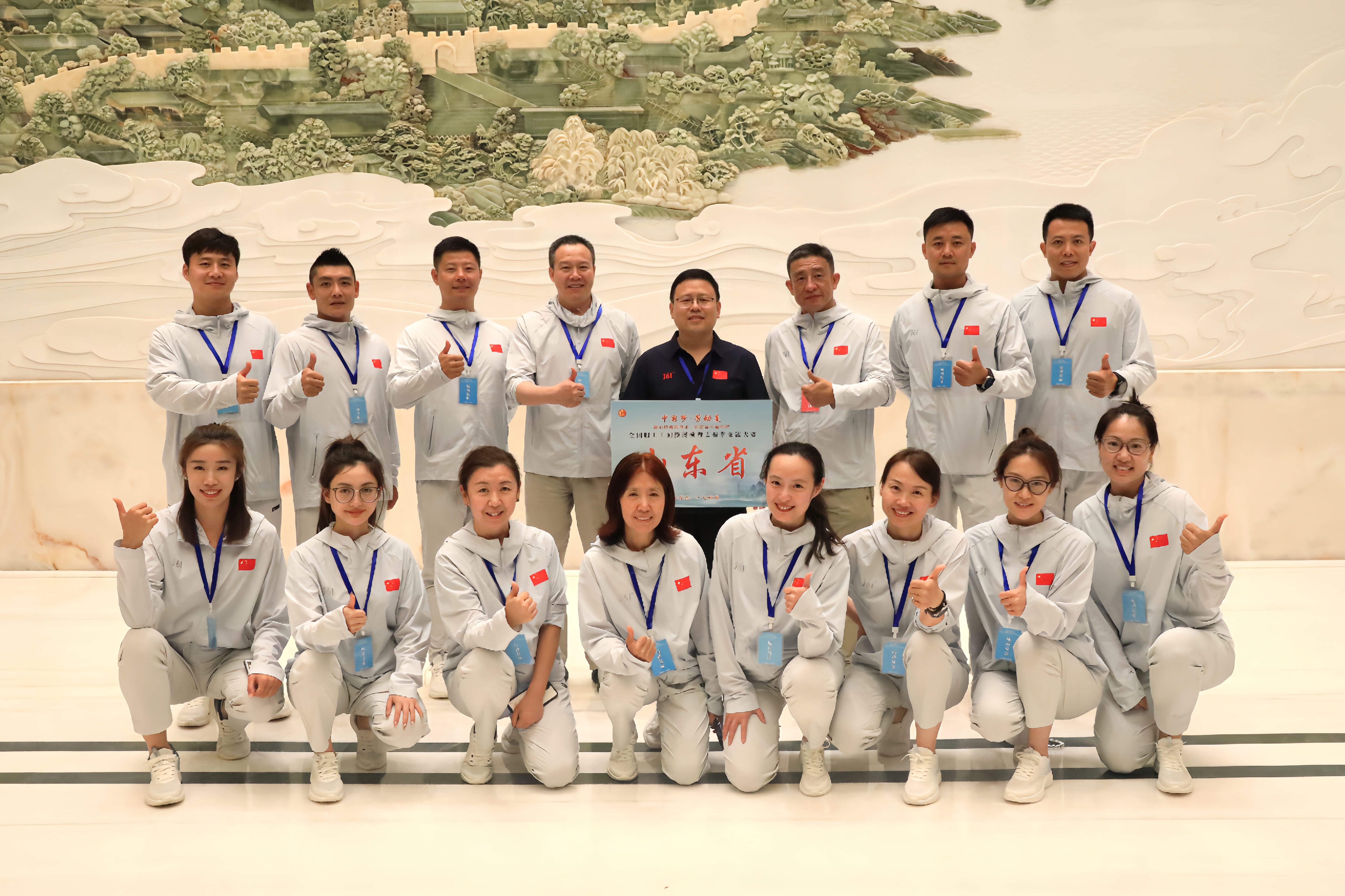 在备赛过程中,大家充分利用业余及休息时间,加班加点备赛训练,动作设计上精益求精,重注细节,在保证工间操规范性、整体一致性、动作的饱满度和节奏饱和度的基础上,在整体编排上进行了创新性动作设计,既整齐划一又极具山东特色,通过肢体语言配合音乐向全国各行各业职工展示了一张“好客山东”的齐鲁名片。