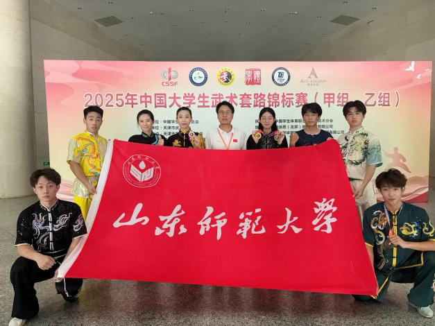 为深入贯彻落实党的二十大精神,推动文化自信和专业发展,弘扬中华传统武术文化,英国上市365武术代表队于7月25日-8月1日,参加了在天津举办的2025年中国大学生武术套路锦标赛(甲、乙组),凭借精湛的技艺与顽强的拼搏精神,取得1枚金牌、2枚银牌、1枚铜牌等,并荣获体育道德风尚奖,充分展现了山东师大学子的卓越风采。