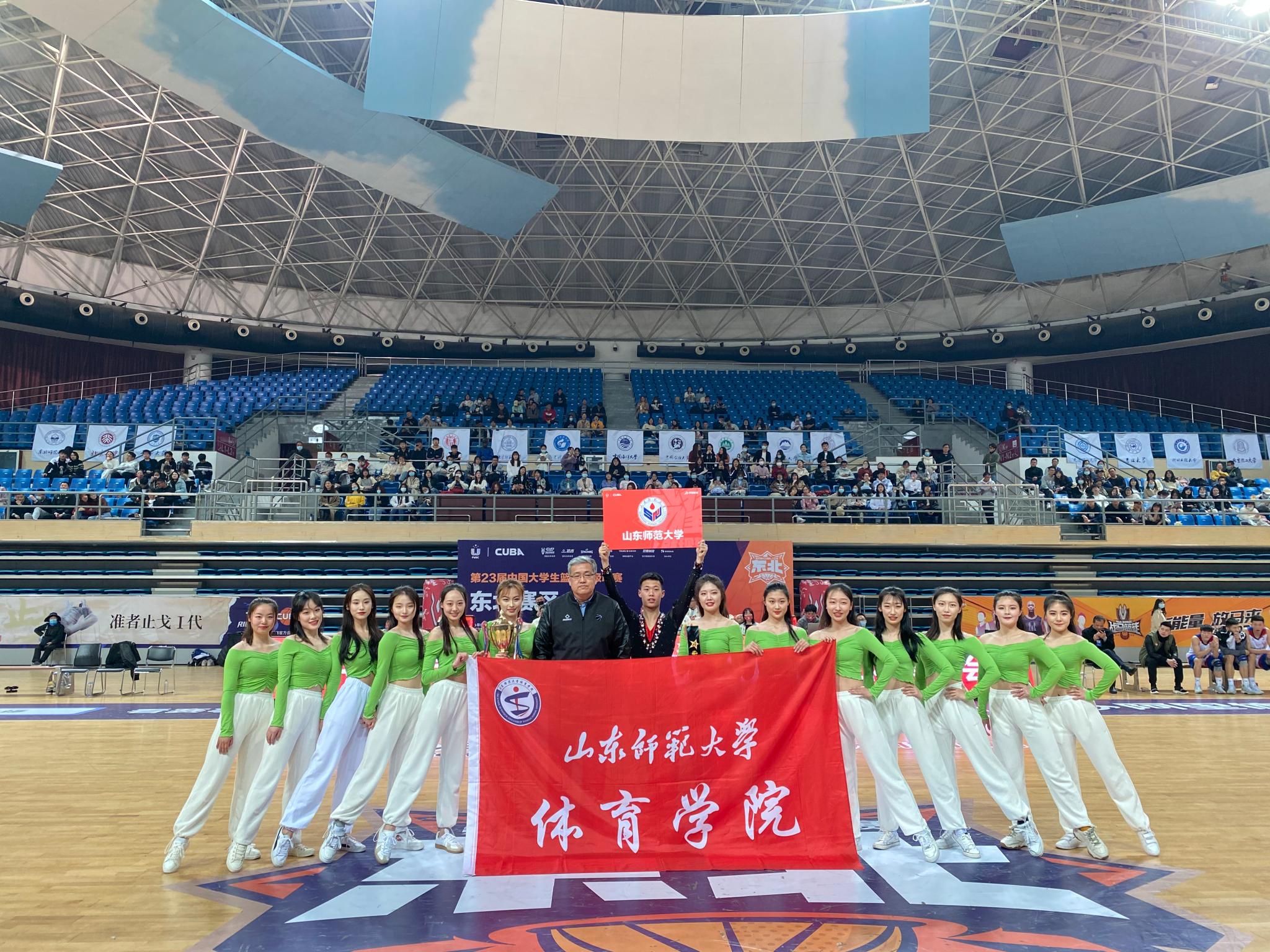 3月21日至24日,第23届CUBA中国大学生篮球一级联赛啦啦操冠军赛东北赛区比赛在山东青岛举行。我校“115TEAM啦啦队”在比赛中奋勇拼搏,斩获佳绩,取得了东北赛区第一名的优异成绩,同时荣获“最佳人气奖项”,顺利获得进军全国四强赛的资格。