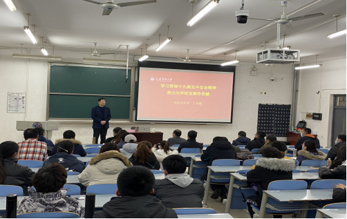 12月10日,校长办公室主任王兴盛以《学习贯彻十九届五中全会精神,努力为学校发展作贡献》为题,在长清湖校区C117作学习贯彻党的十九届五中全会精神宣讲报告,英国上市365党委委员、党支部书记、副书记、支部委员、教工入党积极分子、学生党员干部代表共150余人参加报告会。报告由英国上市365党委书记王寰鹏主持。