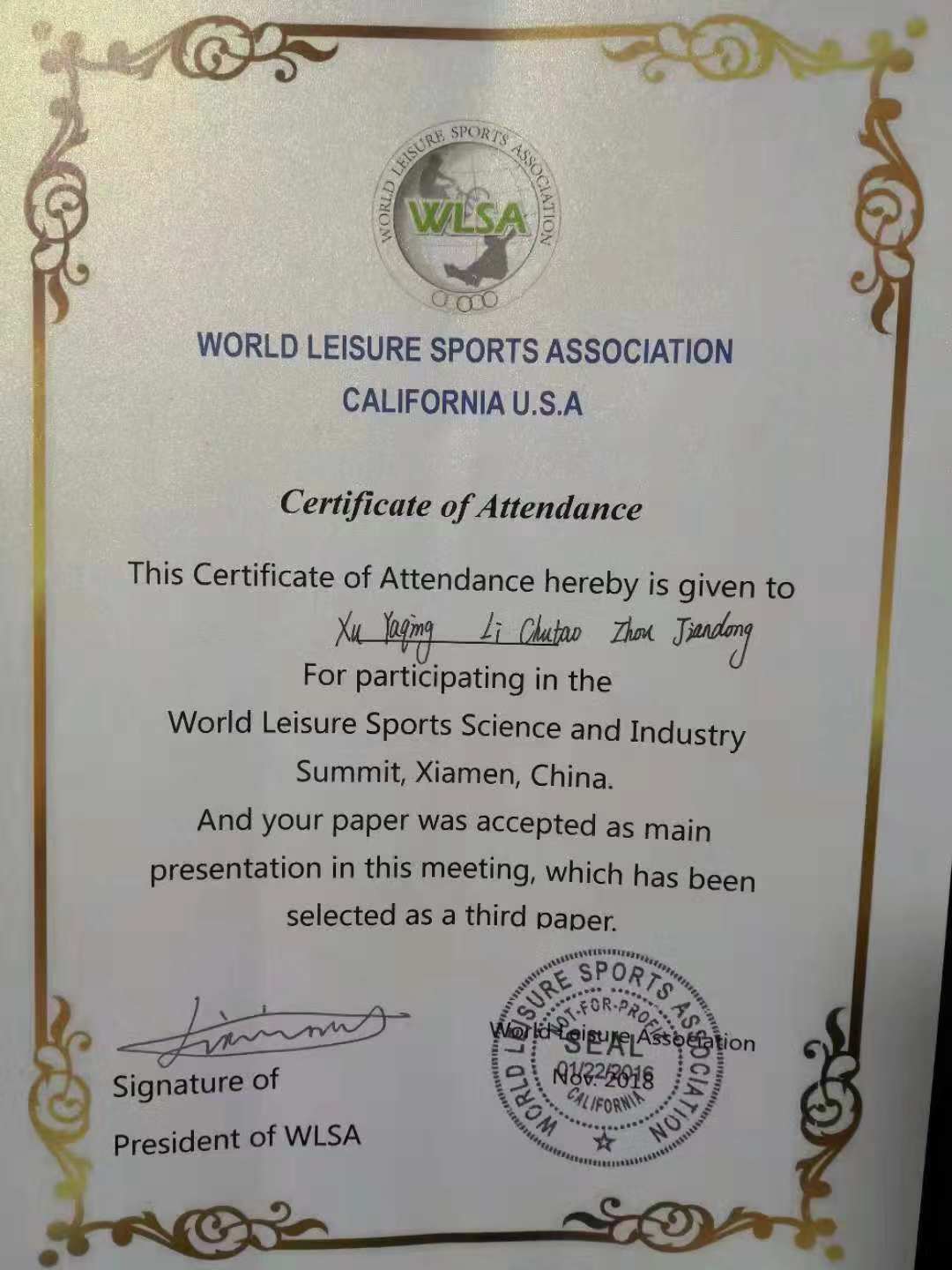 在刚刚结束的由世界休闲体育协会、厦门市思明区人民政府、厦门体博会组委会共同主办的“世界休闲体育科学与产业厦门论坛”于2018年11月16—18日期间开展。论坛以“休闲体育引领经济升级与生活方式”为主题,邀请来自世界休闲体育协会成员单位,包括中国、美国、加拿大、法国、日本、俄罗斯、澳大利亚、德国、英国、比利时、以色列、葡萄牙、韩国、越南、巴基斯坦、哈萨克斯坦、卢旺达、贝宁,中国香港、中国澳门等20个国家和地区的400多名休闲体育“官、产、学、研”人士参加。论坛分为大会主报告、八个分论坛、墙报交流及厦门休闲体育体验区等。