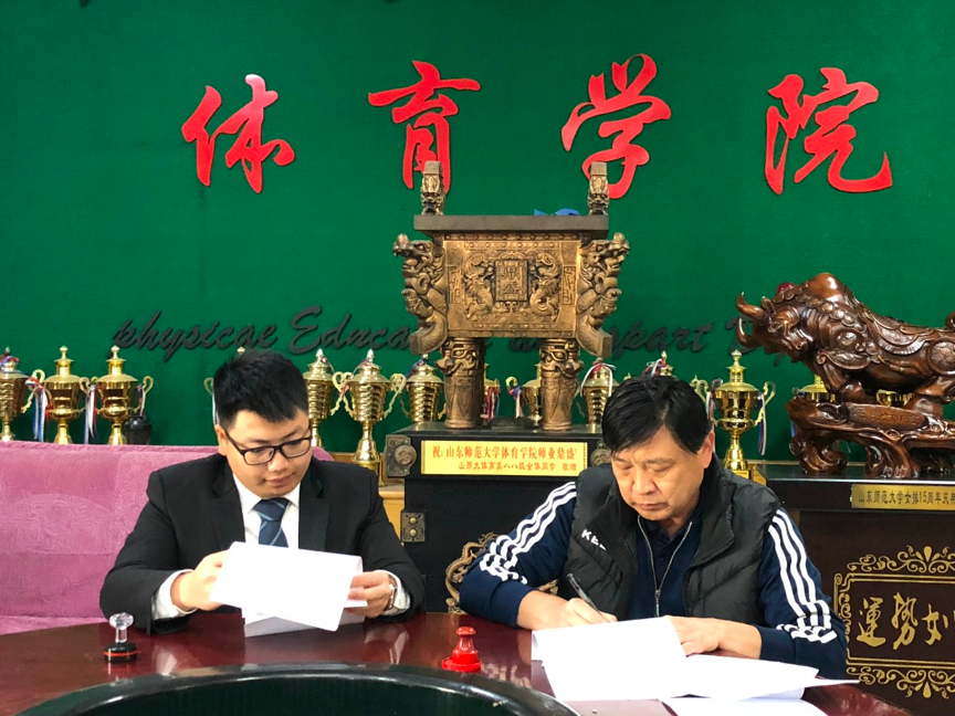 签约仪式由迈思博体育董事长陈嘉星和山东师大校园足球发展研究中心主任李政共同签约。