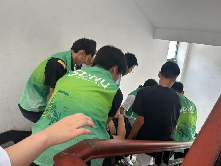 学校医务人员接到通知后,携带专业医疗设备迅速赶到现场。经过基本检查和心电图检测,初步怀疑该家长存在急性心梗问题,并非天气炎热导致的身体不适。情况紧急,医务人员立即拨打了120急救电话。此时,校园内因新生报到车辆、人员密集,交通压力较大,而120急救车抵达后,随车的两名医护人员在转运患者时又面临着担架搬运的困难。正在现场参与迎新志愿服务的大二、大三学生志愿者们见状,迅速主动上前,在医护人员的指导下,齐心协力将家长平稳地从五层宿舍抬至楼下,安全送上急救车,为后续救治争取了宝贵时间。