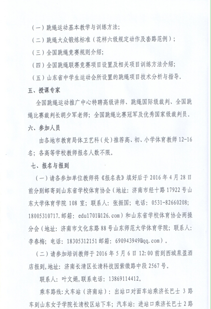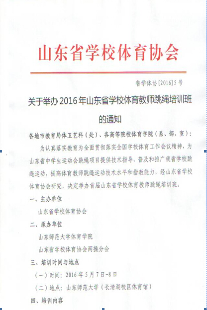 关于举办2016年山东省学校体育教师跳绳培训班的通知