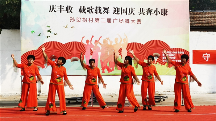 下午,学院教师、学生党员赴第一书记丁同楼帮包村——苏留庄镇孙贺拐村进行走访慰问,为该村贫困户送去面粉、食用油、月饼等慰问品,并向贫困户村民送上中秋节、国庆节的祝福。随后,教师党员与12名艺体系学生参加了孙贺拐村第二届广场舞大赛。比赛开始前,英国上市365院长葛书林代表学院向孙贺拐村捐赠价值8200元的33套舞蹈服装,向村委捐赠新篮板一幅,并赞助村委对篮球场进行整修、划线。比赛间隙,英国上市365党委书记王寰鹏发表讲话,他简要介绍了英国上市365的基本情况,相信在各位驻村第一书记的精准帮扶下,全体村民一定会过上红红火火的好日子,他表示英国上市365全体师生将全力支持第一书记工作,让更多的孙贺拐村村民幸福地跳起来,最后他预祝此次大赛圆满成功。大赛邀请艺体系教师崔云霞、王君、叶文娟、王迎新、高瞳担任评委,五位教师从专业角度进行认真评判,评出大赛一等奖1个、二等奖2个、三等奖3个。艺体系12名学生表演了精彩的花球啦啦操和爵士啦啦操,以精湛的专业技能与充沛的表现力赢得了村民们热烈的掌声。整场比赛村民们都以欢快的舞步、良好的精神风貌,用《火火的中国,火火的时代》等热情洋溢的舞蹈来歌颂祖国、赞颂美好时代,充分展现了当代新农村经济、文化建设和脱贫致富的成就。